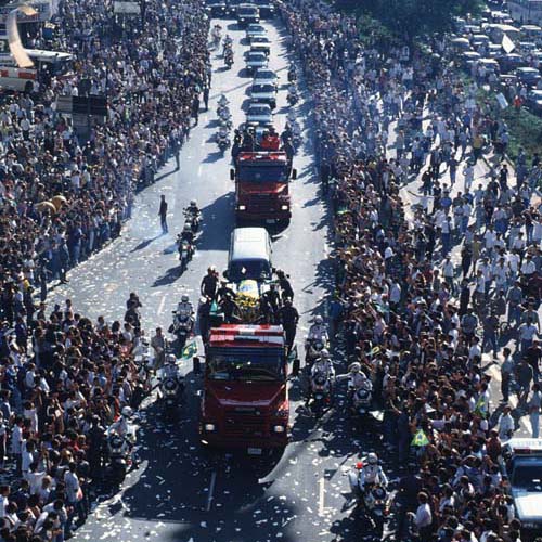 | Senna不只是一位F1車手或賽車冠軍,更是打破世界藩籬的拉丁美洲英雄,他的死,象徵車手作為英雄的時代已告終結。 |