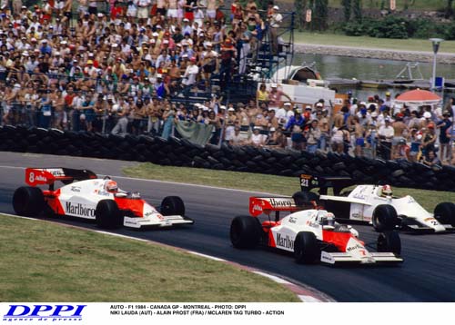 | Lauda睽違F1達7年之後,再度於1984年重返賽場並加入McLaren車隊,成為Alain Prost隊友。該年他勢如破竹,拿下生涯第三座也是最後一座冠軍。 |