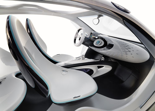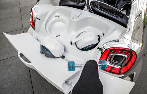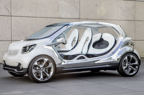 其實在幾天前,Smart才剛在網路上發布一系列Fourjoy概念車設計草圖,這部四人座的Supermini車款未來沒有意外的話,或許將會是下世代fortwo改款的樣板;然而隔沒幾天,官網上又發布一組Fourjoy的實車圖片,從這一批實際定裝照中我們可以清楚看見這種類似高爾夫球車的無車門開放式設計包覆著極具科技感的內裝,屆時在法蘭克福車展展出後,更實用的空間和後座設定將讓Fortwo未來的進化大計向前邁一大步。