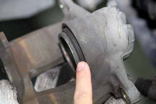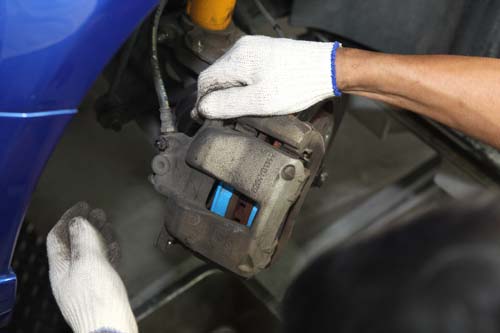 | 作業要點3:拆換來令片時,必須將推動來令片的活塞推回卡鉗本體內,在回推的過程中,請同時確認活塞是否生銹作動不良的現象,這部分需要多加注意,因為這會影響到煞車作動反應,不可輕忽。 |