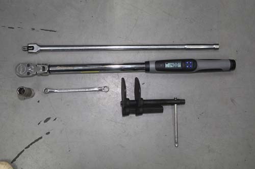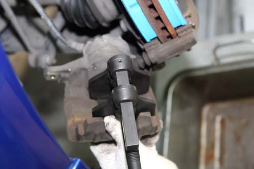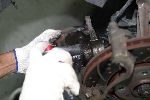 | 卡鉗螺栓拆卸接著我們將以適當規格梅花板手拆卸卡鉗活動螺栓,拆卸過程請小心,不要強硬施力板動螺栓,有可能發生螺栓斷損的狀況。 |