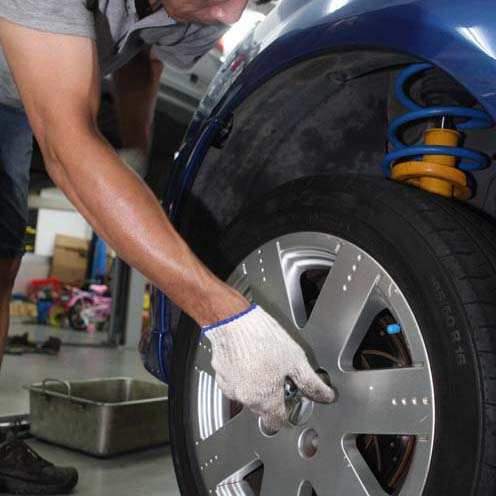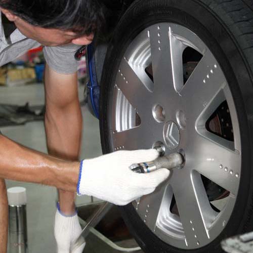 | 拆卸輪圈螺帽拆卸輪圈螺帽時,遇上過久不易拆卸的輪圈螺帽時,千萬不可以氣動板手執意拆卸螺帽,建議先以板桿拆卸較佳。 |
