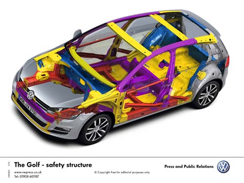 | Golf高剛性輕量化鋼材不只讓車重比前代輕了100公斤,在經過正面及側面撞擊後也獲得強度上不錯的評價。 |