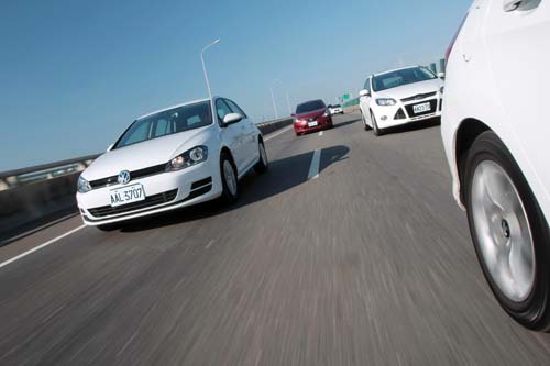掀背車除了外型要有個性外,操控性也是此級距車主所想要的標準配備項目;VW原廠表示,七代Golf在全新MQB模組化平台的開發之下,其原本紮實、穩定的德系駕馭感受將完全保留呈現,然而其他3部車也絕非泛泛之輩,不僅有舒適性,還具備了不俗的操控功力。七代Golf在車體與底盤懸吊結構皆進行了輕量化的工程,因此在車重減輕的情況下,原本預期會對整體的操控性表現造成影響,但實際試駕後則發現其仍維持著以往Golf的調性,無論是底盤的剛性與紮實度,或是路感回饋的清晰度以及高速過彎時的穩定性表現,皆擁有歐系掀背小車一貫的優異駕乘感受;此外,懸吊的抑震處理也相當出色,使車輛擁有不錯的乘坐舒適性,車內乘員不會因過多的碎震與彈跳而感到不適,這樣的清晰易掌控的行路質感以及坑洞處理能力,與新Focus倒十分雷同。