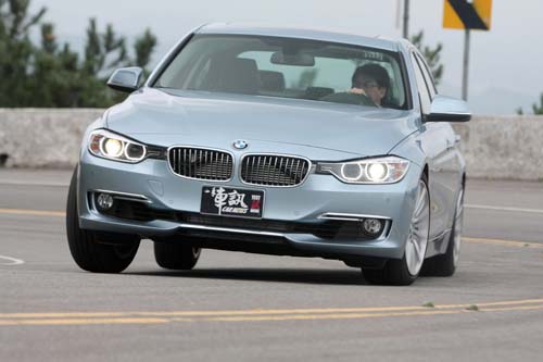 這次試駕的F30 ActiveHybrid 3所搭載的油電系統與ActiveHybrid 5車款一樣,引擎部分為一具3.0升直列六缸Twin Power Turbo渦輪增壓引擎,變速箱則配置八速手自排系統,在具備HPI燃油直噴、進排氣可變氣門正時系統以及雙渦流增壓等技術下,可輸出306匹、40.8kgm的最大馬力及扭力,搭配擁有55匹馬力以及21.4kgm扭力值的電動馬達之後,整個油電動力系統的最大綜效馬力與扭力輸出提昇至340匹、45.9kgm,在如此強勁動力的支援下,讓ActiveHybrid 3擁有僅5.3秒的0~100km/h加速實力,硬是比車重較輕的335i還要快上0.2秒。此外,被安置在行李廂與後座之間的電動馬達模組以及鋰離子電池,若在電力飽滿與Auto Start/Stop功能支援下,能夠以平均35km/h的車速以純電力行駛4公里,同時也能加速至75km/h的極速;若在車速低於160km/h以下收油門滑行,此系統也能暫時停止引擎運作,在不耗費燃油下使車輛繼續行駛前進,達到節省燃油的目的。