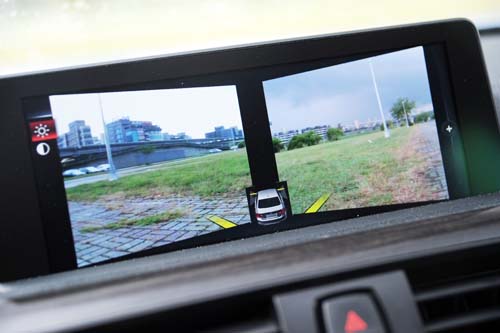 | 透過車頭左右兩側的攝影鏡頭,可將前方路況清楚傳送至控檯液晶螢幕,輔助駕駛更安全順利的停車。 |