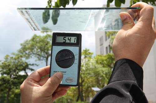 | 標榜「隔熱率」94%的產品因為透光率與清晰度較高,實際上仍有541W/m^2熱能傳遞到量測儀,實際效果隨測即知。 |