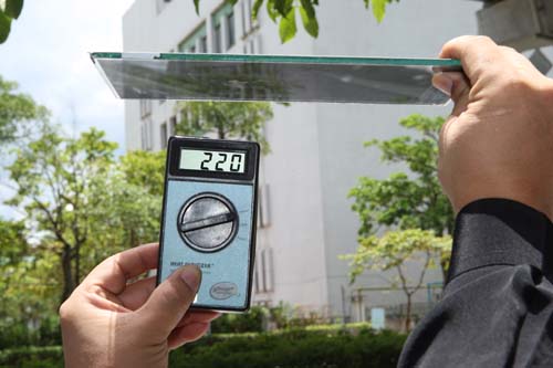 | 曾老闆為讓消費者了解到每張紙真實的隔熱效能,特地採用「熱能量測儀」,在太陽下進行最真實的比對(太陽直射下熱能功率達到1203W/m^2)。 |