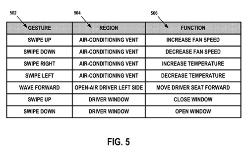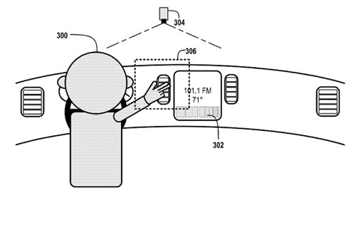 Google最新一件專利作品,以不須直接接觸車內中控台上的音響、空調介面,利用手勢就能操作這些功能。這項專利運作的原理,蠻像XBOX的kinect,車內會安裝一個辨識鏡頭,來判讀手勢。簡單來說,當手擺在音響、空調,或是窗戶等範圍,就能進行該功能的調整。