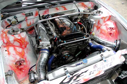 | 這部由國億車坊所操刀改裝的Silvia S13甩尾廠車,所使用的改裝電腦就是F-Con V Pro 3.2版,再透過Garrett 2835渦輪的吹送,與引擎腹內全鍛造部品的改造,預估馬力可達450匹的水準。 |