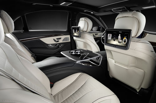 全新 S-Class 的頂級音響甚至超越家用音響系統的層次,配備共計十組的揚聲器規格,與達100w的最大輸出功率。頂尖音響專家 Burmester 更專為全新一代 S-Class 所打造的音響系統,將揚聲器數量提升至13支,最大輸出功率更升級至590w;還有更臻極致的Burmester 頂級 3D 環繞音響系統作為選配項目,將揚聲器數目倍增至24支,最大輸出功率更達到空前的1540w。針對後座買家,另有後座娛樂套件,可加上兩組120V插座與USB/Aux-in插座,與兩組10吋LCD螢幕、無線耳機與 DVD 播放功能。