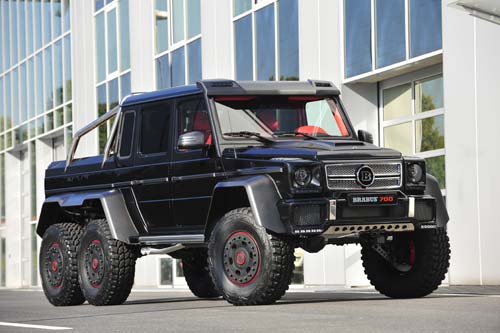 | 原本年產量不過30部的G63 AMG 6×6越野貨卡版已經夠屌,誰知道Brabus還是不放過它,民用市售版的5.5升V8雙渦輪增壓引擎藉由渦輪增壓系統更新而在既有的536hp上增加了154hp,而此改裝套件4×4車型亦適用 |
