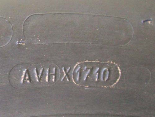 | 輪胎的製造日期共以四個數字來呈現,如果看到的數字為1710,代表該輪胎為2010年第17週所生產。 |