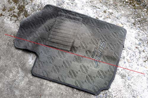 | 拍打除塵後,一樣可以使用內裝清潔劑刷洗,從圖中可以看出腳踏墊清潔過的半邊清爽許多。 |