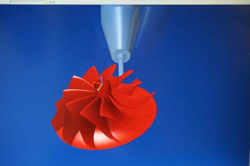 | 以往撰寫五軸CNC程式可說是相當複雜,而現在則開發出特殊的軟體,只要將設計圖面載入即可轉換成CNC程式,不過這套軟體要價相當高昂,因此製作一個小小的葉片成本相對也就會不便宜。 |