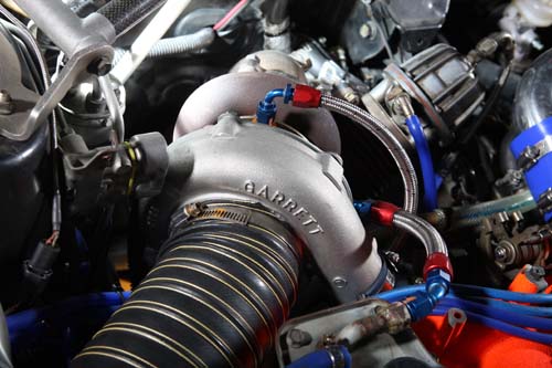 在本車完工之時就已經進行過馬力測試,由馬力測試數具顯示在1.5bar的增壓值下可發揮出457.3hp與54.1kgm的動力表現,之後便將這具渦輪卸下,交由Sumalaya進行渦輪進氣側葉片的升級。原本GT3076R進氣側葉片為56T六葉雙層設計(六大六小),而換裝的鍛造CNC葉片則為58T大小,並採用單層11葉片的設計,且靠近軸心處的厚度更薄,這也就代表葉片的長度更大,因此在同樣的轉速下所能提供的進風量也就較原本的葉片還要來的更多。