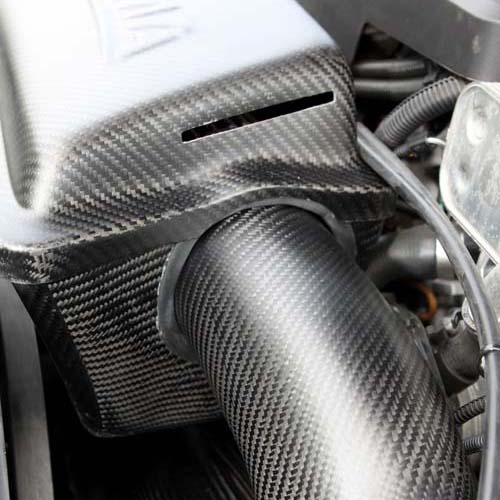 | 在車頭水箱罩左方可以看到碳纖維集風罩,幫助提升高速時的進氣效率。 |