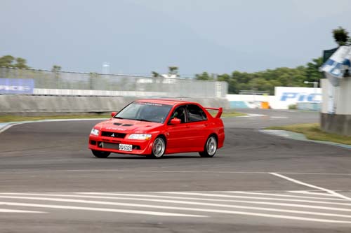 原本筆者以為原廠未改的EVO 7代車款上場測試,應該是最沒問題的,後來測試車手卻在上場測試1圈後就回到Pit區內,並且反應車輛後懸吊似乎有些異常,經過反覆檢查並請統哥上場試開後,發現原來是因為測試車輛的避震器為原廠無法調整Camber的部品,如果使用抓地力不強的街胎還沒問題,若換成熱融胎時,由於熱融胎的入彎速度快上許多,此時如果輪胎沒有設定Camber角度的話,就極有可能因胎壁無法支撐側向推力而折胎,大幅縮小胎面接觸面積,並影響抓地力表現,因此在入彎收油時,後輪會出現極不安定的轉向過度狀況,這是測試前始料未及的情況,考量此情況在不影響測試公平性下,最後還是決定先把三款TW值100的輪胎測完,其他三款抓地力更強的熱融胎則待EVO 7更換改裝避震器後,並簡單設定Carmber後再進行測試,要不然到時後折胎的情況會更明顯。