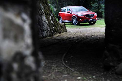 實際在平溪106山路上試駕,感覺此車懸吊頗為硬朗,而雖然沒有4WD的循跡性,但較輕的車重補足了轉向的敏銳性,仍能展現Mazda特有的操控品質。不過,SUV相對於房車較高的車高,在高速下入彎仍須早些踩煞車。