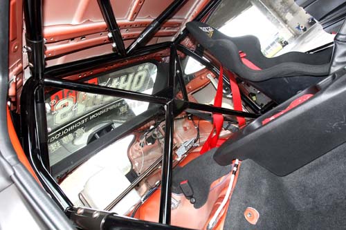 | 本車後半部內裝完全都已拆除,並追加FIA認證的16點式Cusco防滾籠來提升安全。 |