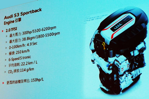 至於備受國內性能買家所期待的全新S3 Sportback高性能運動掀背鋼炮,更是車系中最讓人熱血沸騰的指標車款,自1999年推出首代車款以來,S3車系歷經前後兩代車款的精進演化、持續雄厚產品戰力,早已在歐系性能掀背鋼炮市場上獲得空前成功,其卓越的性能血統如今傳承至第三代全新S3 Sportback,宣告四環品牌即將再次譜寫新的掀背鋼炮傳奇!全新S3 Sportback搭載一具車系中性能實力最強悍的2.0 TFSI高效率渦輪增壓引擎,透過缸內直噴科技、AVS汽門伸程控制、電子式線傳油門控制等先進科技的加持,並結合精密的引擎監理系統,不僅賦予引擎精準無比的超高燃油效率,更同步爆發出狂悖的300hp/5500-6200rpm最大馬力,以及38.8kgm/1800-5500rpm的最大峰值扭力,平均每公升引擎排氣量的容積效率高達150hp/L,縱橫全轉速區域的動力曲線分佈,幾乎是隨時隨地挑動著駕駛者的沸騰情緒!