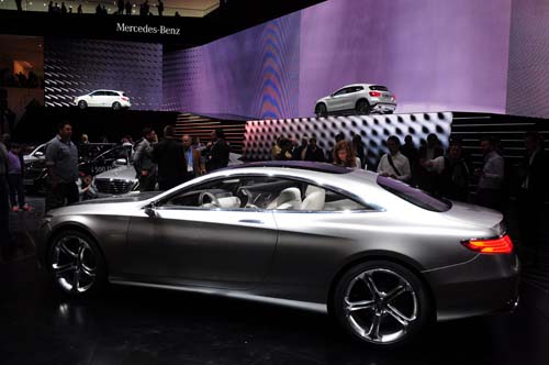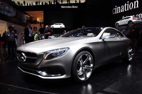 M.Benz在這次的車展上發表全新S-Class Coupe概念車與原本的四門車型相較,雙門車型的S-Class Coupe自A柱之後的車身線條開始陡降,流線的車身搭配車側肩線一路往後拉最後在尾燈處會合,充滿了躍動的韻律感,並在直立水箱罩中央鑲上大型三星廠徽宣示著不平凡的身價,與S-Class相近的流線頭燈造型,成為新一代的家族風格。S-Class Coupe有著氣派的2945mm軸距,車身尺碼則是5050×1958×1409mm,再搭配21吋的大尺碼輪圈,展現旗艦房車的奢華氛圍。在動力方面採用V8雙渦輪增壓4.6升的引擎,最大馬力455hp,最大扭力則為71.4kgm。預計之後仍會有V6、AMG等動力可供選擇。不過S-Class Coupe概念車與原有CL車系雙門轎跑車的定位有所重複,是否會就此取代,官方沒有明確說明。S- Class Coupe概念車在法蘭克福車展上首演後,量產車型預計會在2014年1月的底特律車展正式發表,就讓我們拭目以待吧。