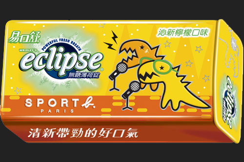Eclipse易口舒無糖薄荷錠這次推出的聖誕炫音限定版再度與與法國時尚品牌潮流時尚的Sport b.合作,季節罐鐵盒外型同樣以Sport b.品牌小恐龍為主,搭配 Eclipse易口舒聖誕炫音限定版6款風格:迷幻炫目的繽紛野莓、前衛太空的沁涼薄荷、耀眼奪目的勁爽薄荷、熱情奔放的酷橘薄荷、鄉村溫暖的沁新檸檬及自然舒適的舒涼薄荷與6種特殊曲風。凡透過手機掃描Eclipse易口舒無糖薄荷錠罐身的QR code或至Eclipse易口舒活動網站皆可以錄製個人專屬的聖誕專輯,除了能體驗6個不同的特殊曲風,還可以選擇自己填詞獻唱,製作獨一無二的專輯分享給朋友家人濃濃的聖誕氣息,作為今年最酷炫的聖誕歌曲。