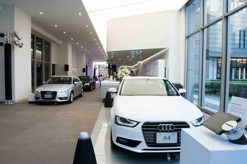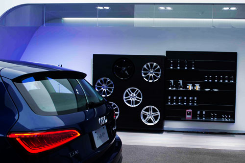 全新Audi板橋展示中心在采迪汽車投注鉅資精心打造,以及台灣奧迪汽車的全力奧援之下,於短短不到半年的時間即竣工落成啟用,其地理位置座落於新北市的核心區域新板特區內,地處該區域最熱鬧繁華的商業中心與交通樞紐,將為居住在新北市的車主們提供最便利之賞車服務;全新Audi板橋展示中心的占地總面積逾180坪,采迪汽車斥資逾新台幣二千萬元興建,精心設計的內部格局陳設,在澄澈銀白的薄膜天花板點綴之下,加上來自戶外的陽光自天花板自然流洩,搭配媲美賽車跑道質感的地面,為整座展示中心營造出寬敞大器的氛圍,而陳列其中的全新Audi車款在視覺上更具備彷彿即將從賽道上起跑的衝刺動感,也適時為整座展示中心注入前衛的動態能量,相信將會讓每一位造訪的Audi車主與貴賓們留下深刻印象,感受到不同於以往的四環品牌魅力!