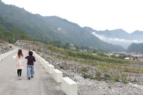 我們經過阿嬌姨位於山腳下的舊家,與其他仍舊塞滿土石的建築物不同的是,阿嬌姨將住所捐給縣政府,做為飄流木雕塑職訓中心。經歷過幾次土石流侵害的村民有的繼續留待此地,有的因為擠不進政府單位所提供的補助名額,只能帶著不滿與遺憾離開傷心地,另覓他處尋求發展,留下來的大多以簡單的耕植,形成自給自足的生活方式,亦或是在谷關地區得到工作機會,在溫泉產業推動下所造就的職缺,讓村民們得以擁有另一個生活下去的經濟來源。