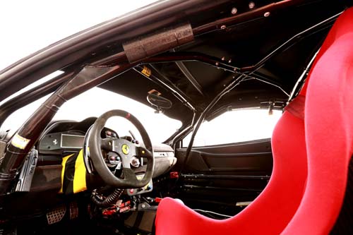 光靠強大動力輸出想要在賽道上獲取最佳成績絕對是不夠的,這部458 Challenge整車僅只有近1400公斤的車重,實在讓人難以相信,Ferrari全體工程師將其車體設計打造技術發揮至極限,基本的車體鈑金與高強度金屬材料的結合,藉此可使的車輛重量與車輛安全仍可保有基本強度與安全性,加上碳纖維內裝與最新的Lexan塑料材質組合,除了滿足視覺觀感喜好,碳纖維材質與特殊Lexan特殊複合材質的內裝給予高強度耐用性與大量內裝件重量減輕特點,是所有賽事車輛選用的最大因素,對於Ferrari工程師來說,這也是採用的主因!