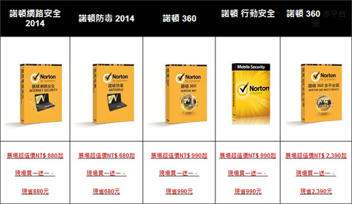 賽門鐵克諾頓(Nasdaq:SYMC) 為回饋廣大消費者,特於「102資訊月」推出買一送一優惠專案,凡於活動期間:2013/11/30 – 2013/12/8,至諾頓活動現場攤位(諾頓攤位號碼:B 811),凡購買諾頓360 多平台版、諾頓360、諾頓網路安全2014或諾頓防毒2014,都可享有買一送一超省優惠價!