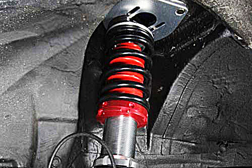而改裝避震器並不是安裝上車就好,後續的調校可是相當重要的一環。前面提到過避震器分為彈簧與減震筒兩大部分,目前市售改裝避震器大部分都已經配好彈簧的硬度與阻尼,而阻尼可調避震器還可以針對阻尼軟硬進行微調,阻尼的定義,就是當我們以一固定之速度壓縮或拉伸避震器時,其所產生的阻力稱之為阻尼。這阻力來自於避震器作動時,活塞會把阻尼油加壓使其通過小孔徑的閥門,如果改變閥門的孔徑就可以改變阻尼的大小。當我們讓避震器以非常慢的速度壓縮或拉伸時,它的阻力只有來自機構內部的摩擦力,阻尼油幾乎不產生阻力。但當作動速度增加時,阻力的增加會和避震器作動速度變化率的平方成正比,也就是說作動速度增為2倍時阻力就會增為4倍。