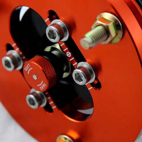 | 市面上大部分的改裝避震器都擁有阻尼可調設計,基本上來說一組彈簧只有一個最佳的阻尼搭配,但如何調校出最佳值還得配合車主的駕駛習慣而定。 |