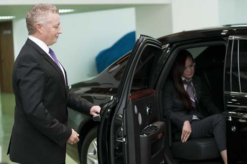 一位禮車司機之所以專業,其實能耐如何從乘客未上車前便可知道。當我們赴約前往載送車主時,看見他的身旁若有行李,我們便會主動徵求車主同意後拿起行李放置於後車廂,並請車主確認物品已獲得安置;另外,載送地點若是在鬧區或機場大門等人多手雜的地方,則會幫忙看管隨身物品以免扒手有機可乘。當我們彬彬有禮地開啟後車門恭請乘客上車後,便回到駕駛座上並將座椅稍微向前調整來製造後座更多寬廣的乘坐空間。同理,當乘客下車前,我們也會注意下車處是否有水坑或穢物,有的話機靈的避開,另外在前往載送車主前,我們也會抽空前去探查所要前往的地點,如果是飯店、會議廳或者是大型體育館,也會預先與該場地人員做好知會和溝通工作。就定位後,司機就要開始他最重要的任務了!切記,你的身分是一名司機,沒有什麼比把車開好還來得重要,特別是眼前這部售價1,788萬元起跳的Ghost車款,失神撞壞了你可賠不起,更不用說是後座那位身價非凡的尊貴車主了,你得全程提高警覺以維持自己、車輛及乘客的安全,特別是你自己,如果太過拼命跟歹徒你死我活最後命喪黃泉,最後留下與豪宅等價的豪車及動不動就買串鑽石項鍊送老婆的車主孤身於窮鄉僻壤,這無疑是羊入虎口的將富人奉送給盜匪任憑宰割,所以上車後的首要任務便是上緊發條的留意周遭。