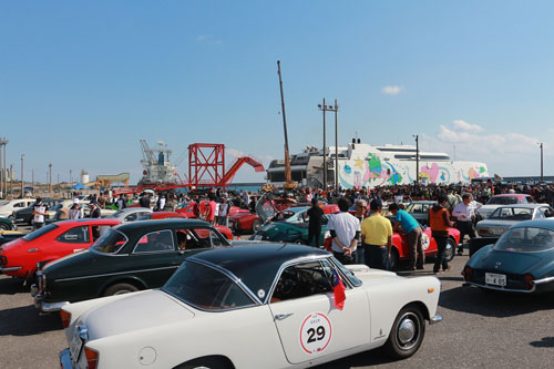 | 在花蓮港準備登船的骨董車隊以及現場熱情圍觀的民眾。 |