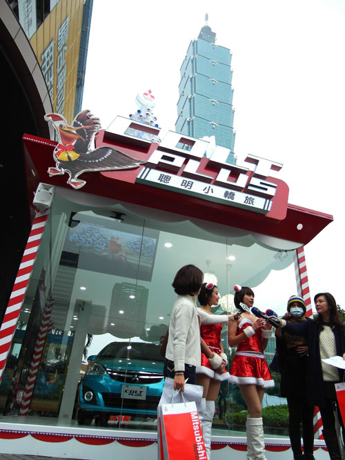 聖誕節即將到來,為點燃佳節氣氛,全新大改款MITSUBISHI COLT PLUS聰明小轎旅將化身為聖誕遊樂園,即日起至2014年1月5日止在台北信義區ATT 4 FUN戶外廣場陪大家溫馨過節。由主打歡樂氣氛的COLT PLUS與e-moving共同組成聖誕車隊,並以駱駝、鵜鶘、聖誕樹等節慶意味濃厚的造型汽球點綴車身,化身為繽紛亮麗的現代麋鹿提前為大家報佳音。首次有聖誕車隊上路,所到之處吸引不少人潮注目,可愛的MITSUBISHI聖誕女郎現場更以動感的聖誕舞曲揭開活動序幕。