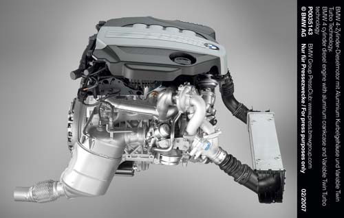 | 渦輪增壓術的使用方式相當廣泛,以BMW這顆柴油四缸引擎為例,想要不同的性能輸出特性,只要選擇使用單渦輪或雙渦輪增壓技術,即可改變動力輸出曲線。 |