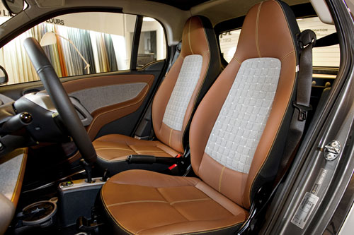 身為都會時尚小車先鋒的smart車款,引領了微型車所擁有微碳排、微油耗等趨勢,成為全球都會小車的代表,以其新潮、大膽的設計廣為時尚潮流人士喜愛,小巧車身以及創意設計更是造就其獨特市場定位的關鍵因素。而丹麥是北歐五國中的設計大國,許多設計史上的大師級人物便是來自丹麥,像是蛋椅之父 Arne Jacobsen、松果燈創始人 Poul Henningsen、設計雪梨歌劇院的 Jørn Utzon 以及精品界的 Georg Jensen。自 1952 年創立至今已超過 60 年歷史的 BoConcept 可說是丹麥家具設計界的代表,也是世界上最成功的家具連鎖品牌之一,分布世界超過60個國家、共260家分店,自 2010 年底引進台灣。BoConcept 外型秉持著沈穩高雅的簡約線條,不呆板地在細節上大膽玩創意,抓住都會上班族所需要的 ON / OFF 性格。此外 BoConcept 對沙發皮革的要求更為講究,著名的單人沙發椅線條富有律動感,因此在皮革轉折處的車縫上需更加細膩,才能確保編製後的皮革線條達到一體成型般滑順,就像飛機外殼上不容許多餘的金屬零件,這次smart fortwo edition BoConcept特仕車更將這份質感從客廳的沙發上植入車室內了。