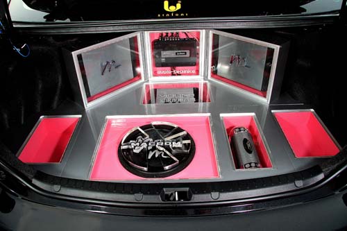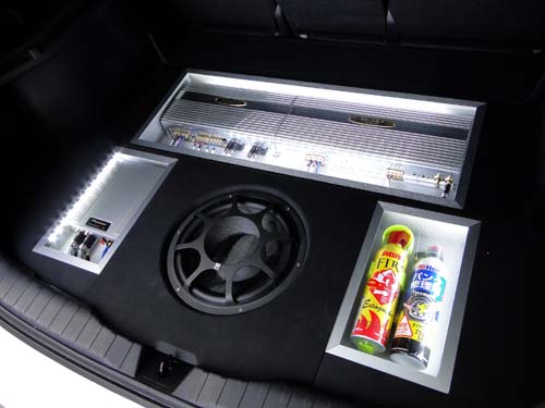 | 超低音喇叭由於沒有所謂的指向性問題,因此安裝的位置通常在行李廂內產生共鳴。由於重低音喇叭的輸出功率高,必須搭配擴大機將訊號放大,才能有效推動,這點是車主升級前必須注意的。 |