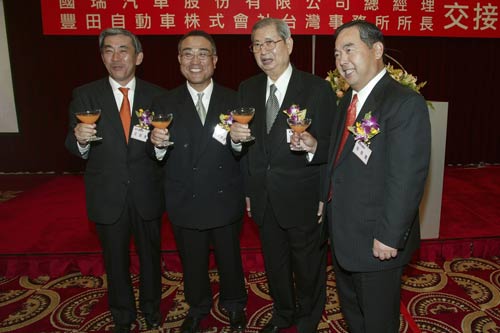 國瑞汽車─Toyota 台灣製造廠,於一月二十四日(三)假圓山飯店舉行新任總經理交接酒會,現任總經理橫濵孝志在台灣的五年任期屆滿,將歸建日本,其職缺將由疋田 亮先生接任。交接酒會由國瑞汽車董事長蘇燕輝親自主持,會中除了經濟部工業局陳昭義局長出席祝賀外,日本技術合作母廠豐田汽車 岡部專務取締役、日野汽車 齋藤部長、總代理和泰汽車及其屬全省經銷商、國瑞汽車協力會等…多位經營階層主管亦獲邀到場觀禮,儀式簡單隆重。