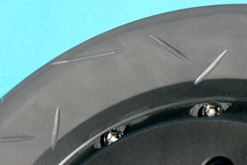 | 碟盤上的紋路除了美觀與些許的散熱性之外,最大的功用還是在排放出來令片與碟盤摩擦後所產生的粉塵。 |