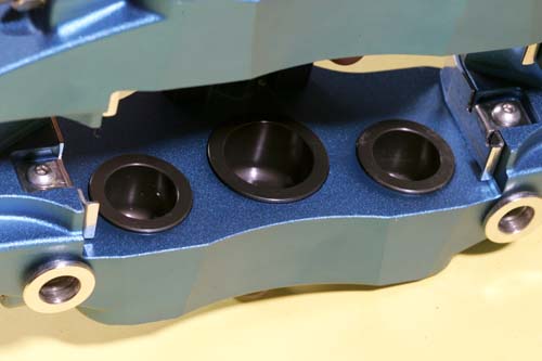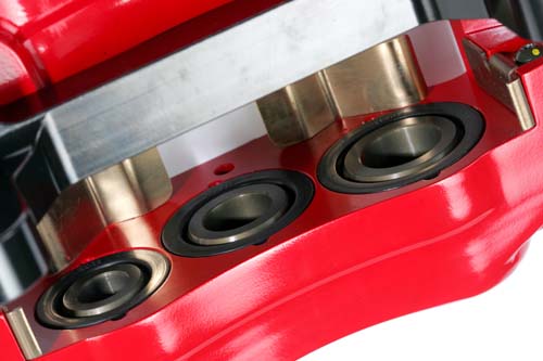 | 增加活塞的面積即可增加煞車作用力,然而因為單一個大直徑的活塞在卡鉗上會有空置的空間,為求卡鉗本體的面積縮減、提高活塞面積的最大量,因此才會有多活塞卡鉗的設計出現。 |