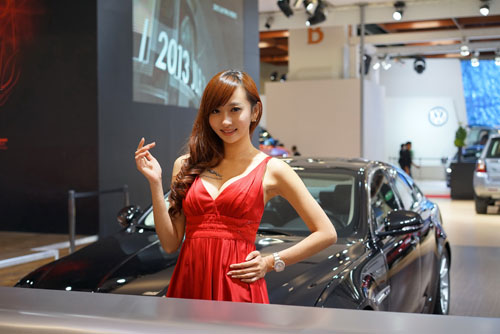 | 這張是Porsche保時捷的解說小姐,大感光元件營造淺景深的效果很好,可以明顯突出車模的人物。 |