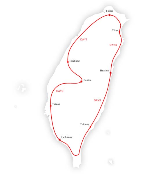 四天三夜、總里程數約1000公里的活動期間,共61部的參賽車必須繞著台灣走一圈,路線由總統府前的停車廣場出發,行經圓山大飯店後便直接前往中山高速公路,途中行經台中、台南、高雄、屏東、台東和花蓮等地,最後從花蓮港搭著麗娜輪前往蘇澳。