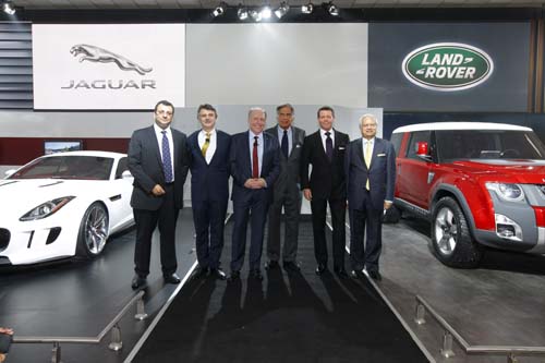 | JLR CEO Ralf Speth(左二)認為,沒有印度Tata集團老闆Ratan Tata(右三),就沒有JLR。據了解,Tata每年投資JLR約20到30億英鎊,年投資高於獲利,而且又讓英國JLR引擎廠重生,做法頗有別於JLR過去的東家。 |