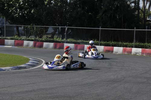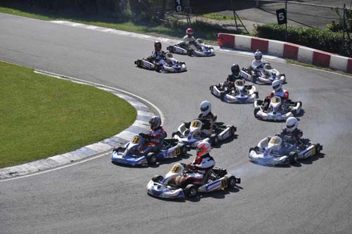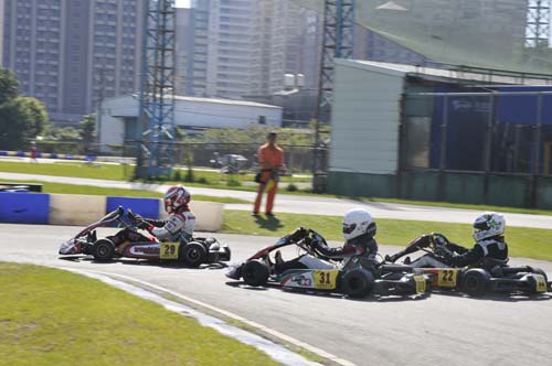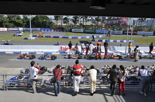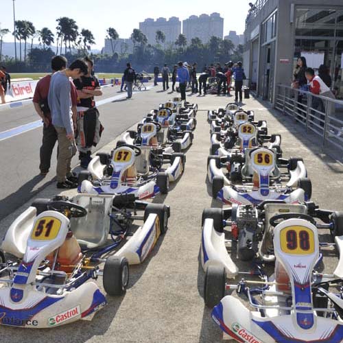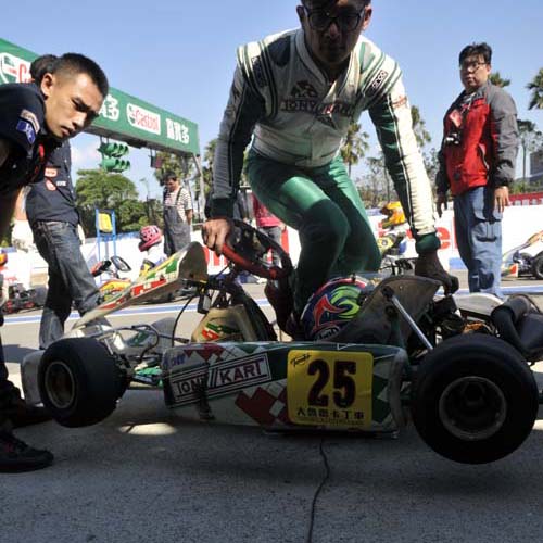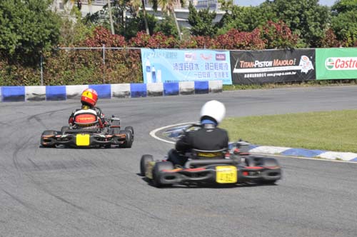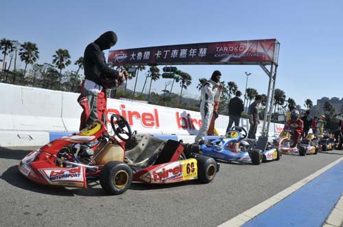 卡丁車是所有四輪賽車運動的基礎,而國內目前最積極推廣卡丁車賽事就是大魯閣卡丁車場,近幾年均針對三個特定組別舉辦系列賽,而2013年11月底的這場卡丁車嘉年華雖未列入年度積分,但KT-100、ROTAX MAX、IAME X30共三個組別在同一個周日集合在一起比賽,甚至還有N35-X的兩小時耐久賽,讓這天成為國內卡丁車界最矚目的重頭戲。參賽者在早上八點就要報到,但實際上參加ROTAX MAX與IAME X30的車手幾乎都已經在現場整備賽車,還好我參加的是KT100統一規格賽,車子全由大魯閣技師搞定,我只要帶著個人裝備就可以比賽,輕鬆多了。但我畢竟是卡丁圈的生面孔,除了店長小翁之外,認識的人沒幾個,加上前幾天已調好賽車的座椅位置及秤過體重,車手跟車輛加起來的總重不能低於145kg,低於這個數字需要加重,但我跟車子的總重是150kg,等於我比別人多帶了5公斤下場,這時才發現要減肥當然是來不及了……