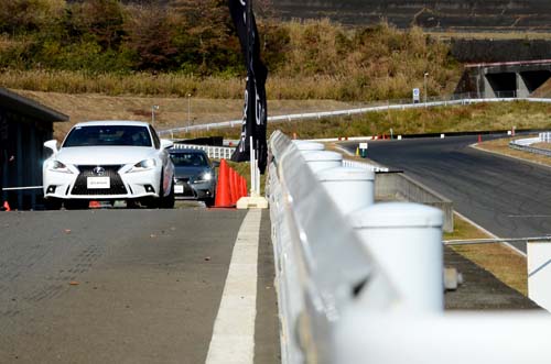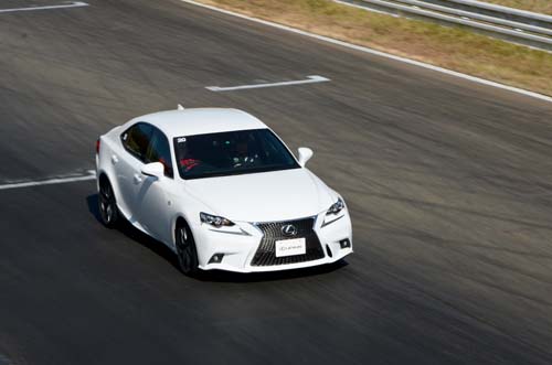 試駕IS350 F Sport的地方雖然仍在富士賽道內,但並非賽事使用的GP賽道,而是另一個獨立區域的小型測試場,雖然整圈路線的距離並不長,不過有多個髮夾彎與連續S彎所構成,且主要的直線道仍可拉出110~120km/h的速度,是測試IS350 F Sport的一個絕佳場所。IS350 F Sport在避震器設定方面已換上更強硬的運動部品,不過用高速跨越路緣石時仍能夠將路面的衝擊力有效化解,巧妙地將操控穩定性與舒適性同時結合,而輪胎雖然在面對髮夾彎時會逼出抓地力的極限,但車上搭載的動態穩定輔助控制系統開始發揮效應,這時可感覺輪胎雖然開始滑動,但透過煞車系統針對個別車輪的轉速控制而讓車子又回到原定的路線,再次證明了科技始終來自於人性。