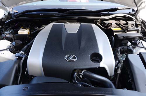 新一代IS車系目前提供三種動力選項,基本款依舊是大家熟悉的2.5升V6,再來是新加入的2.5升直四油電混合動力,頂級旗艦同樣為3.5升V6汽油引擎;國內考量市場需求只引進2.5升V6的IS250及2.5升直四Hybrid動力的IS300h,並同步提供F Sport的選擇,IS350並未在引進之列。此次試駕的IS350配置代號2GR-FSE的3.5升V6引擎,變速箱為最新的八速手自排,齒比分布寬廣且換檔速度與反應更直接、快速,展現更高的性能水準。這具V6引擎採用燃燒效率更高的D-4S缸內直噴供油技術,進氣系統同樣為新世代的Dual VVT-i雙可變氣門正時控制架構,對引擎進氣量與進氣效能作出最為精準的控管,讓它在6400rpm可爆發出318匹的最大馬力,最高扭力為38.7kgm/4800rpm,僅需5.9秒就能夠完成0~100km/h加速,極速則因安全考量而限制在225km/h。