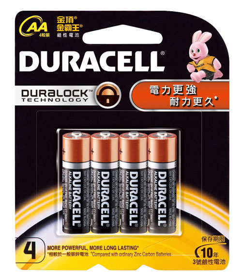 另外,Duralock™金頂電池所使用的純鋅材質,超高純度有如24K純金,有效保存電力儲蓄量,使電池品質更加穩定持久。經實驗證明,和一般碳鋅電池相較,全新Duralock™金頂電池提供高達6倍的持久電力,以售價換算最多可節省高達75%的開銷,是消費者安心使用的電池首選!