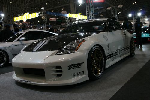 | 除了V12 Supra外,Top Secret今年展示的改裝車幾乎都沒有在動力上加以著墨,這輛Z33只在外觀、懸吊、排氣管上進行提昇,尤其在外觀方面Top Secret自行開發這套空力套件,讓Z33的氣勢提昇許多。 |